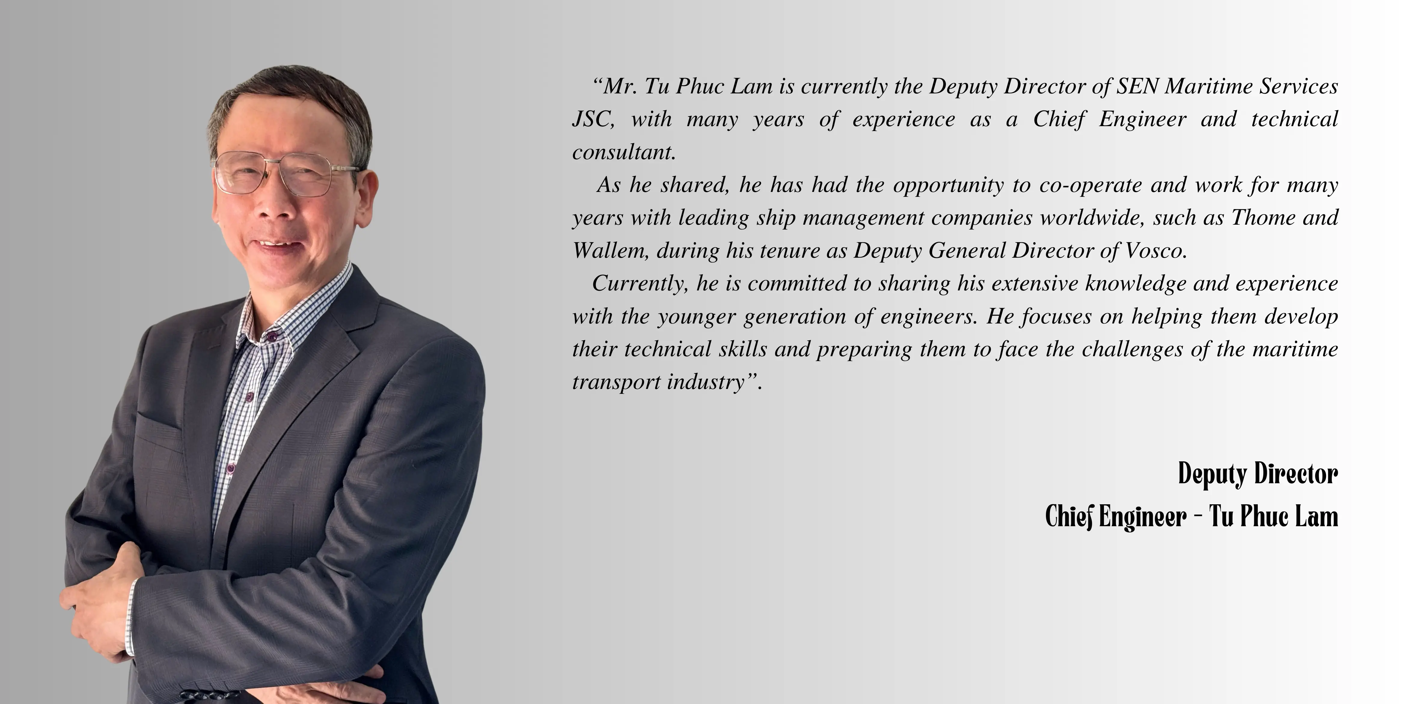 Mr. Ty Huy Nguyen is currently the Director of SEN Maritime Services JSC